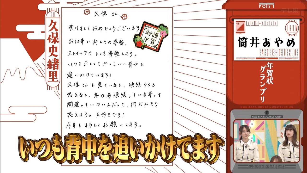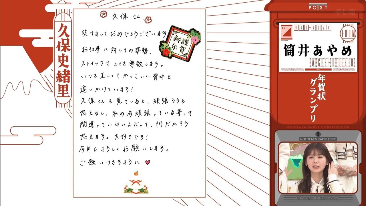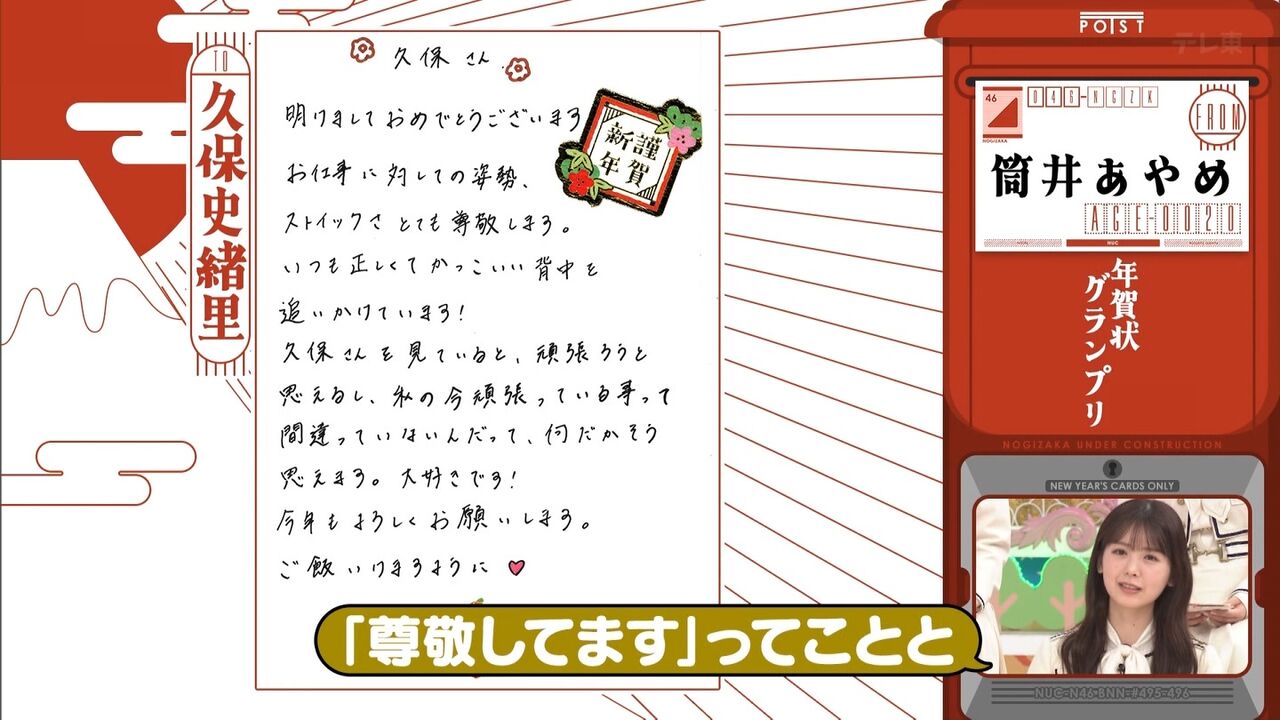 筒井あやめは久保史緒里のことを「尊敬してます」とのことです。